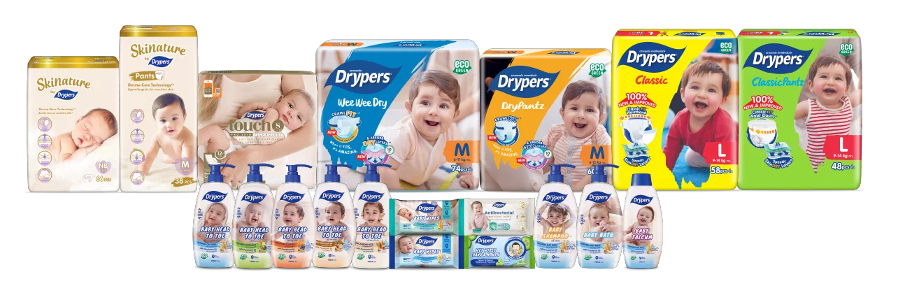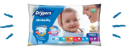 This is where we’ve got the perfect fit for your baby. How wide or long the shape is, elastics that hug your baby’s curves, the way everything is securely held up (and in!), and many special features that enhance dryness and comfort. All these ensure that Drypers will always fit your needs while keeping baby happy and comfortable, at every stage of growth.